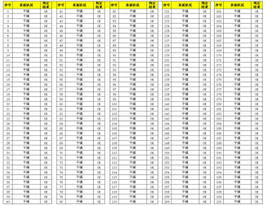 由以上觀察結(jié)果可看出,在預(yù)設(shè)130℃,48S的參數(shù)下可有效烘乾。烘乾過程中未出現(xiàn)煙霧等異常狀況,未出現(xiàn)有明顯異味的現(xiàn)象;