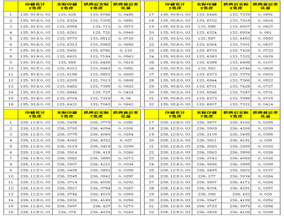 測試結(jié)果:PY-705印刷烘烤前後尺寸相差不大 ,且均未超過網(wǎng)版尺寸,尺寸較穩(wěn)定;