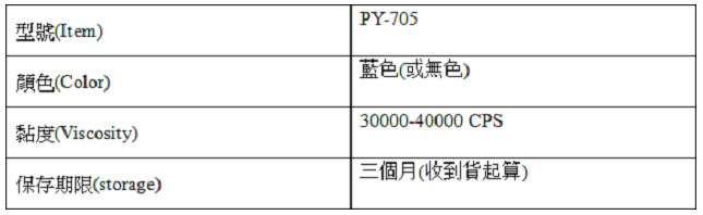 PY-U1207 為壓克力型紫外線硬化透明塗料,乾燥速度快、低黏度、低塗佈量、流平性佳、高硬度、高光澤、耐磨、安定性佳、主要用於玻璃保護(hù)漆, 防止刮傷, 易清除 。